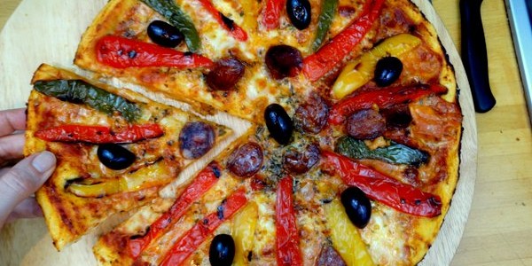 Alida over at My Little Italian Kitchen made a Spicy Pizza with Peppers and Salami and I’m so not going to argue with her fine sentiment that ’making pizza for someone you care about is certainly loving’.