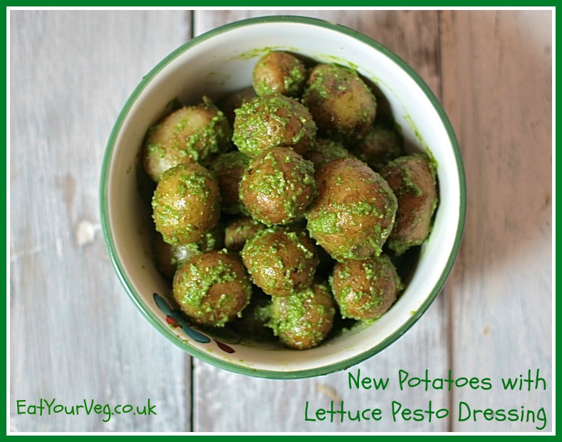 Next up an entry from yours truly with my side dish of New Potatoes with a Homemade Lettuce Pesto Dressing. Good for barbies or picnics. Or pies or quiches of course!