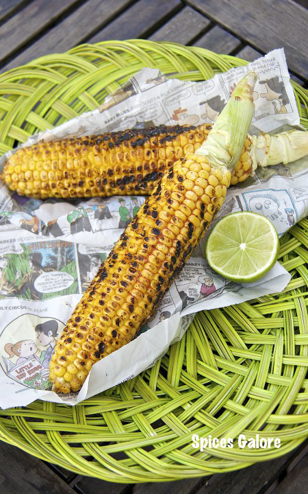 Spices Galore went camping for the first time and Grilled Indian Style Corn on the camp fire, recreating food memories of the street food dish from her childhood. Delicious indeed rubbed with salt, cayenne, lime and chaat masala.