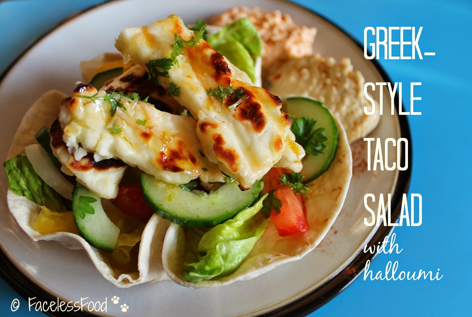 We Don’t Eat Anything With A Face served Greek Style Tortilla/Taco Salad with Halloumi, such a fun way to eat salad, and something I’m so going to try on my terrible twosome!
