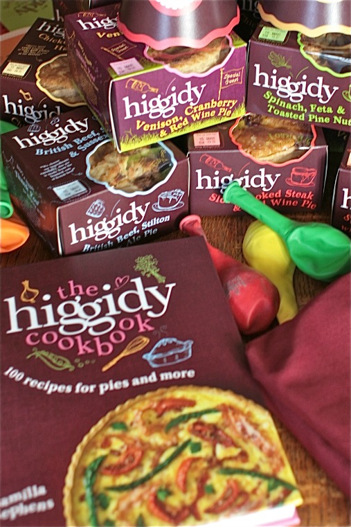 Not only did Higgidy send me pies but a fun party pack of bunting, balloons, hats and name cards which as the wine flowed seemed like a very good idea!. And the kids were utterly delighted to find the remnants the morning after and spent a weekend playing ‘parties’ with them, thanks Higgidy. I also received a Higgidy apron and most exciting of all a copy of the Higgidy Cookbook which coincidentally has been on my Amazon wish list for a while now. Packed full of inspired pie recipes plus tarts, quiches, interesting sides, puds and top tips for perfect pastry. The Spiced Lamb Babotie Pie, Dauphinoise Potato & Onion Pie and Rosti Topped Chicken & Pancetta Pie particularly wrestled my attention and I’m looking forward to getting busy baking.