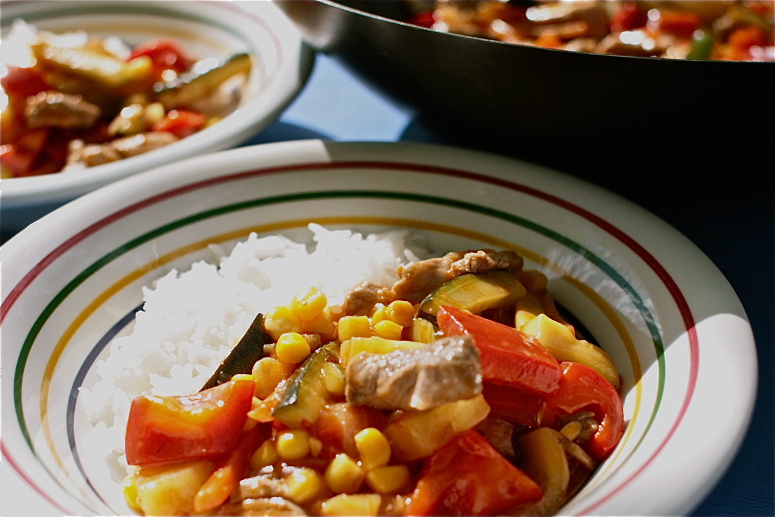 So we’re now in the third month of the Swallow Recipes for Life Challenge and the chosen three ingredients were a potentially tricky Pork, Sweetcorn and Tomato. I have to admit to pondering for quite some time before coming up with my Retro-tastic Sweet & Sour recipe. And my sincere apologies now for the absence of any authenticity, and if you’re likely to be offended please look no further!. But I can nevertheless assure you it’s a pretty tasty dinner.