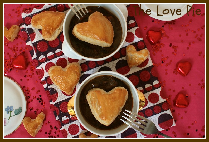 The ‘Love Pie’- sort of reminds me of the 1960’s when everything was full of LOVE! I have cooked Beef Cheeks before but never Pig’s Cheeks- probably tastes similar. I can just picture how rich the flavours will be with this pie, with the addition of wine, veggies and everything else!