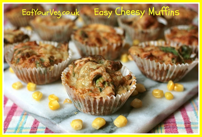 Makes 24 mini-muffins or 24 ordinary sized. Vary your veggies! Use whatever you happen to have, grated carrot or courgette also work, as do finely chopped peppers, peas or cooked broccoli or cauliflower florets.