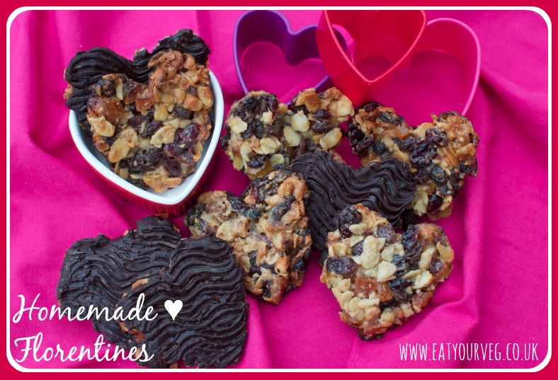 Sentimental reason number two. I have a special somebody to make Valentines treats for. A bit of a shocker I know, though I’m not going to divulge any details here other than to tell you he’s most definitely earned his florentines. Not least for constructing, digging and filling a magnificent set of raised veggie beds at Eat Your Veg HQ. I know it may sound strange to most of you but this is possibly the single most romantic thing anyone has ever done for me. And yes I probably do have a skewed sense of romance, but then that makes two of us!. Do watch out for progress on the veggie beds, now that Eat Your Veg are officially back in the growing game.
