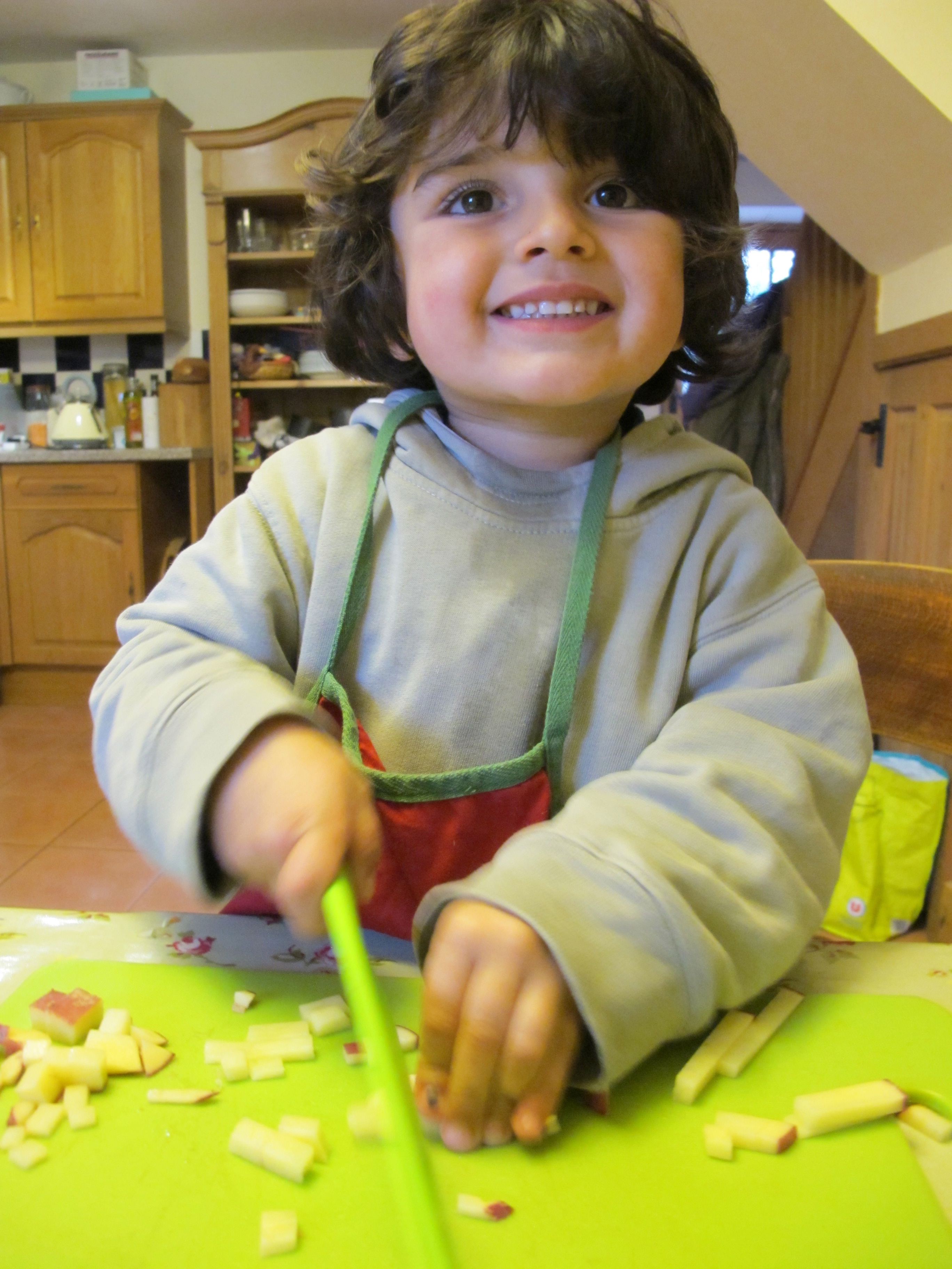 To be honest the soup and scones were supposed to be part of Francesca’s school project, we were making ‘Percy the Park Keeper’ a warming lunch. But Frannie, as ever, did precisely thirty seconds of prep before scarpering off to find something more interesting to do, remarking that Jacques and I were the “cookers”, not her. Luckily for me sous chef Jacques happily stepped up to the mark and got stuck into plenty of useful chopping. He’s obsessed that boy. If there’s anything occurring in the kitchen, he’s there, wanting to assist stir, chop or taste.
