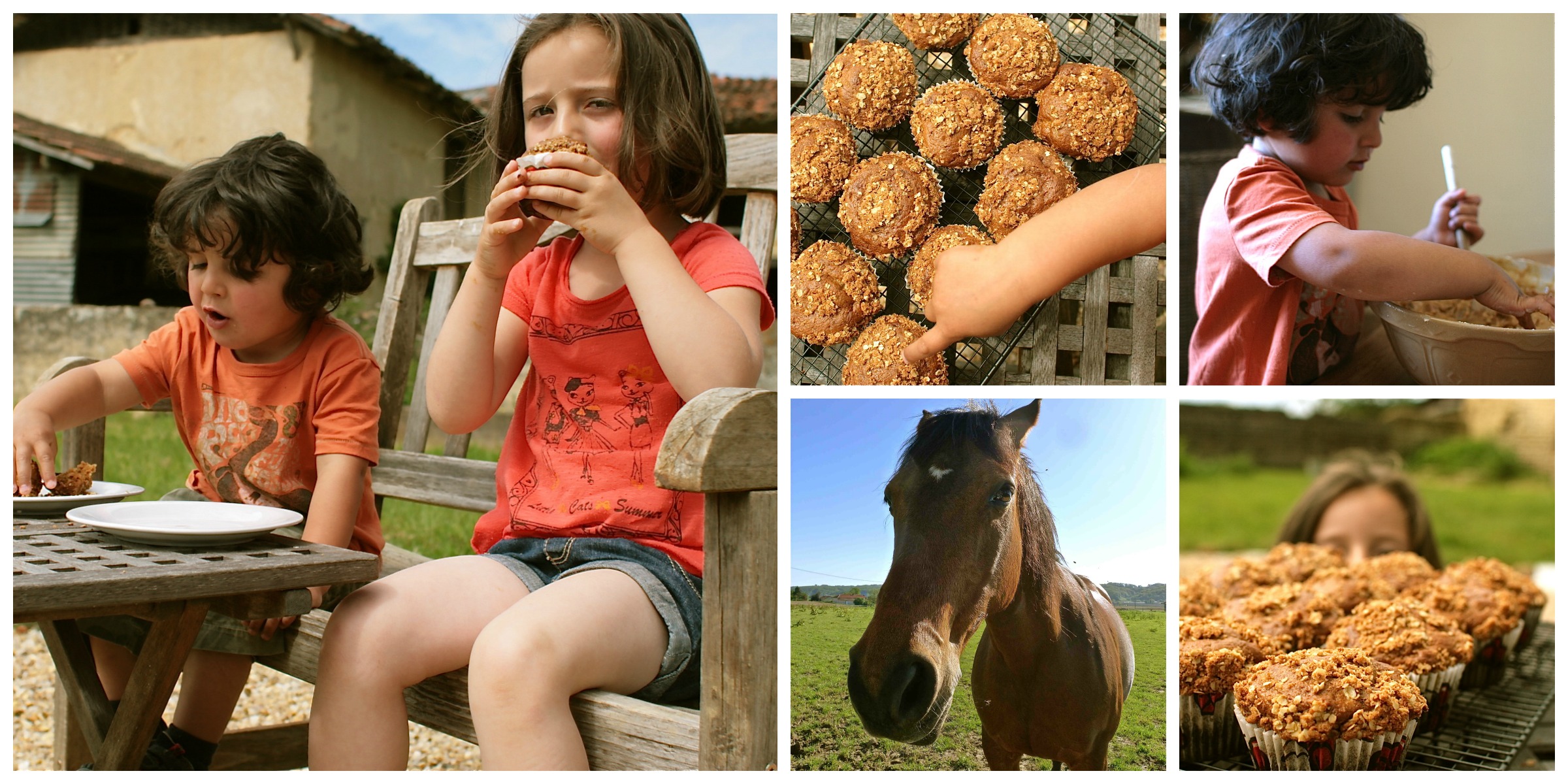 We’ve just had a couple of days of bank jolidays here in France and it rained. It’s pretty much expected and part of the course of bank holidays in the UK, with the amazing exception of this last weekend obviously, but not so normal here!. So rain meant a spot of indoor baking with the littlies which we haven’t managed for quite a while now with all the flitting around I’ve been doing lately. And with a couple of prosperous rhubarb plants in the garden and the Swallow Recipes for Life challenge to mind we made some tasty and fairly wholesome Rhubarb Crumble Muffins together.