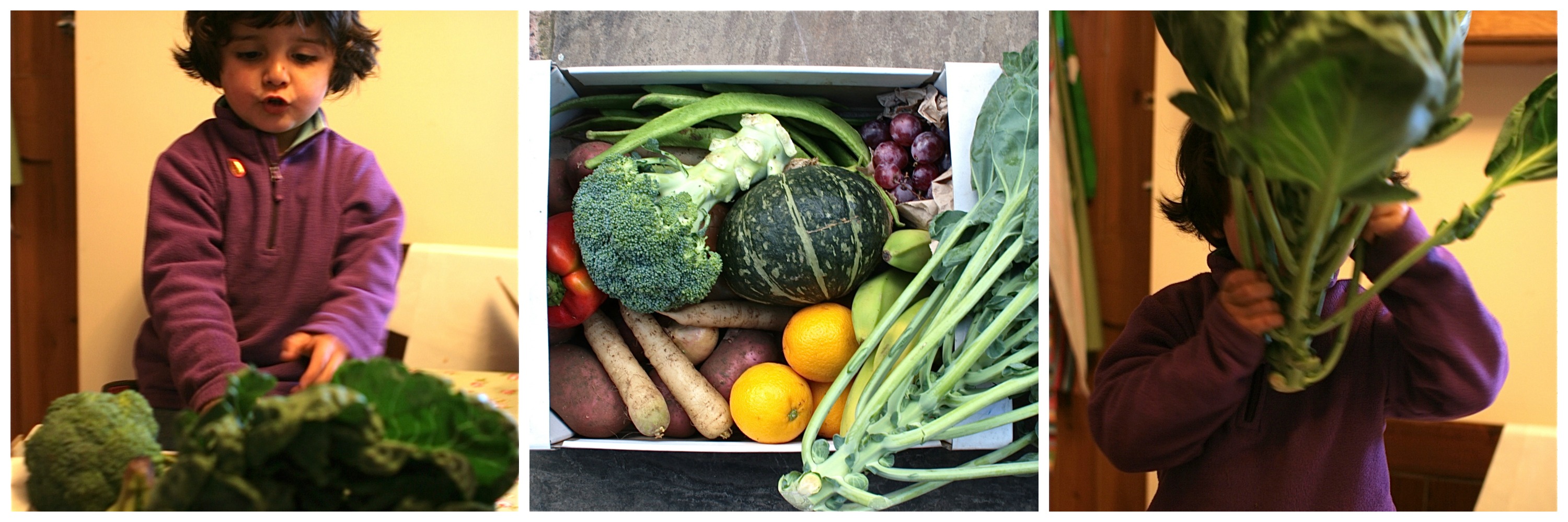 Jacques exploring the delights of our Organic Veg Box delivery!