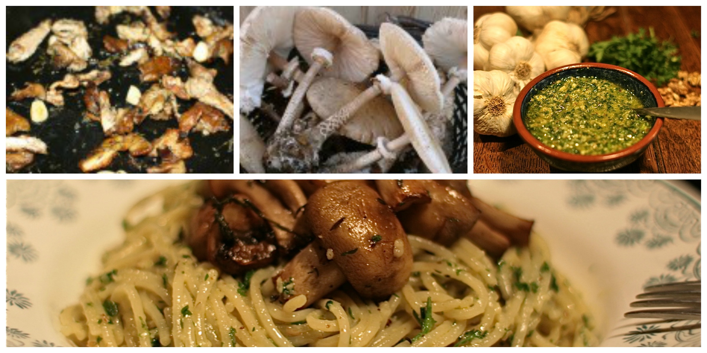 Stilton, Walnut & Parsley Pesto Spaghetti with Roasted Mushrooms (Serves 4)